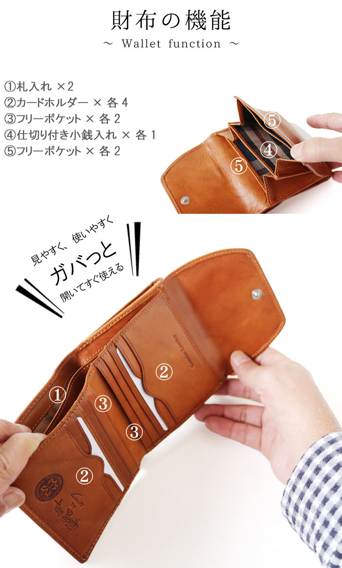 財布を開いたときに全てを見渡す事が出来るので、入らなくなった物が溜まったままになってしまう事が少ない為、すっきりとお使い頂けます。